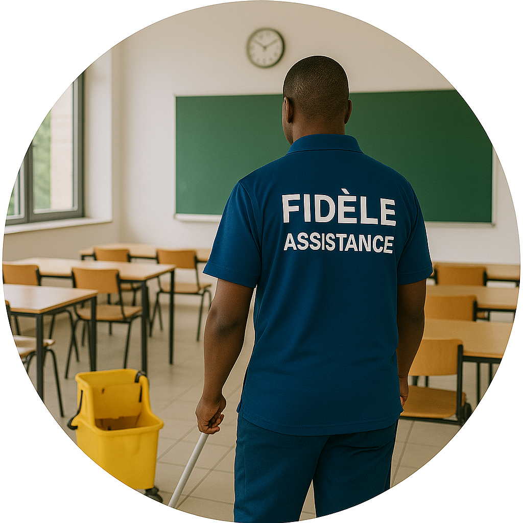 De la crèche à l’institut de formation, Fidèle Assistance garantit une hygiène irréprochable grâce à ses agents formés aux standards du milieu éducatif.